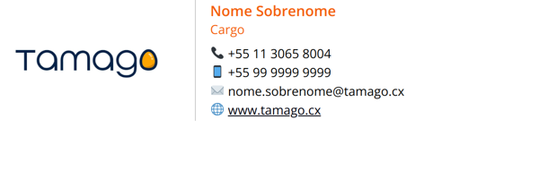 Use o padrão abaixo para as assinaturas de e-mail, apresentação e outros materiais. Crie a sua assinatura em tamago.app.